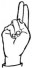 На ћирилици написано КЛАУДИЈЕ ГАЈОВИЋ састоји се из 15 слова [?]. Исписано ћириличном једноручном азбуком за глувонеме: